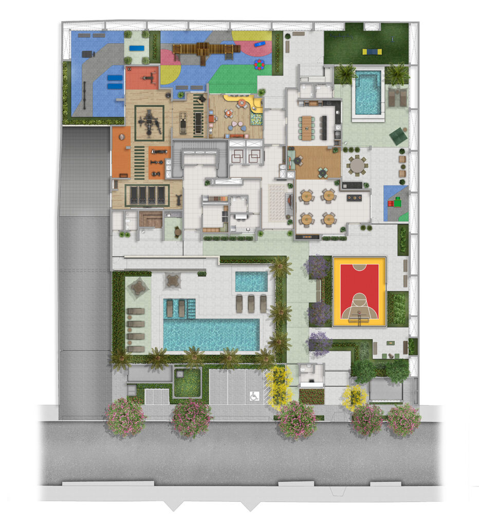 Projeto composto por uma torre de 14 pavimentos, embasamento em concreto armado com 2 subsolos e térreo, em concreto armado convencional